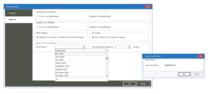 The Tax Box and Tax Listing reports can be run for Closed Periods and options have also been added to view the Out of Period Transactions.