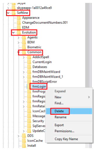 Step 5 – Navigate to and delete the frmLogin registry key as below.