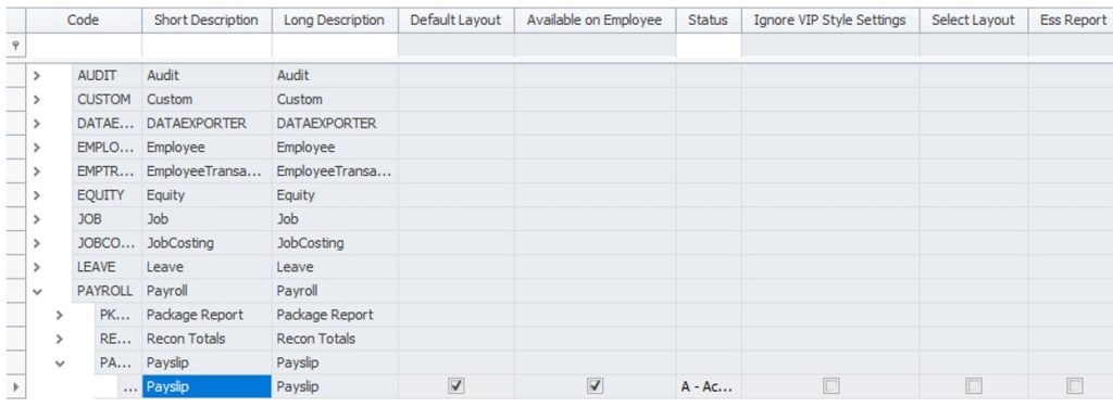 - On the reports screen expand the Payroll reports and select the Payslip